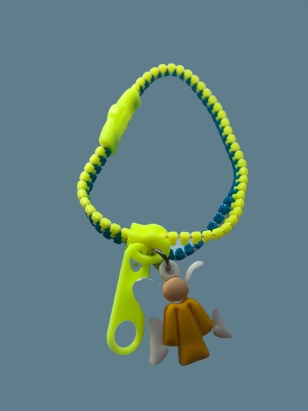 Chrześcijańska bransoletka, zapinana w postaci zamka błyskawicznego z zawieszką.