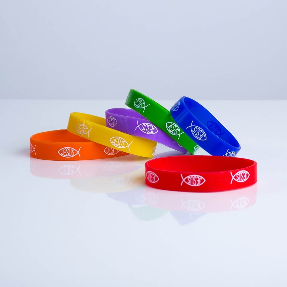 Opaska silikonowa z rybką i napisem JESUS, granato